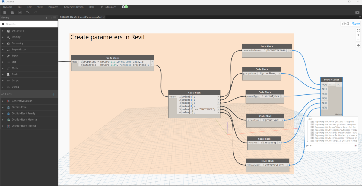 За допомогою даного скрипта можна швидко додати до Вашого проєкту перелік необхідних Вам спільних параметрів з підготовленої Excel таблиці (іде в комплекті із скриптом). Алгоритм працюють на базі коду Python, що забезпечую його стабільність та сумісність між різними версіями програми.