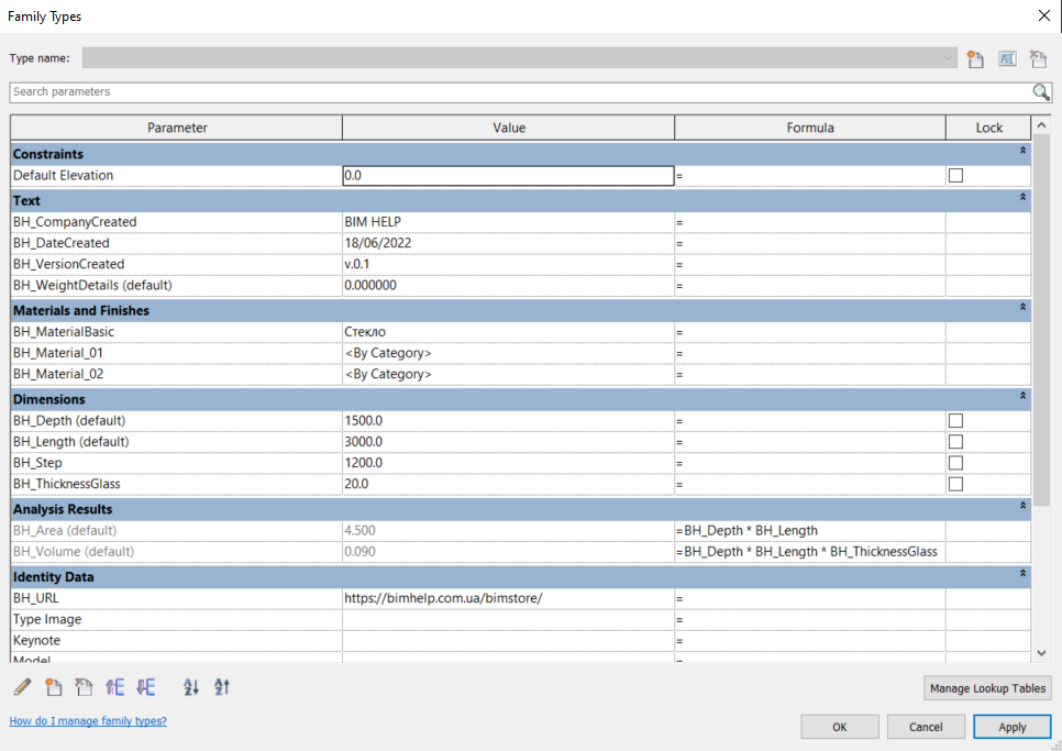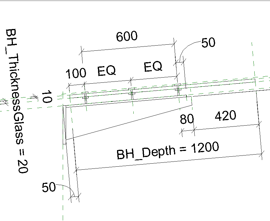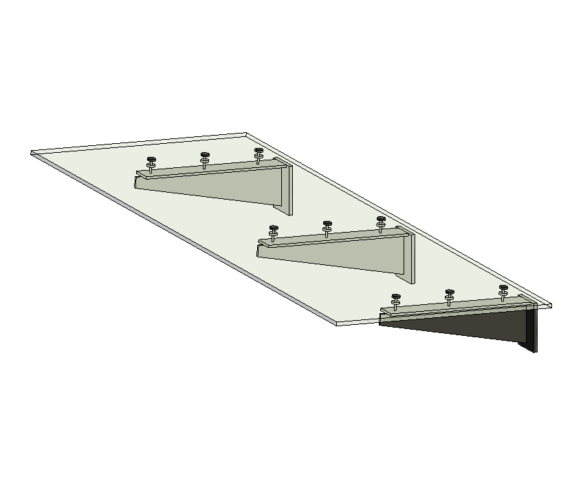 За допомогою параметричних параметрів можна налаштувати довжину, глибину, товщину скла, крок опор козирка, змінити матеріал.