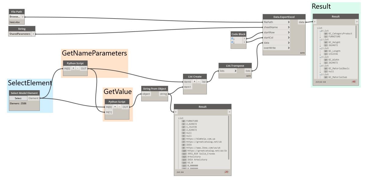 Скрипт автоматично експортує спільні параметри сімейства до таблиці Excel. Спочатку ми обираємо потрібне сімейство в проекті, за допомогою пайтон кодів скрипт витягує з нього спільні параметри і їх значення, наступним кроком він записує вибрані параметри і значення в заздалегіть підготовлену таблицю з одночасним створенням нового листа.