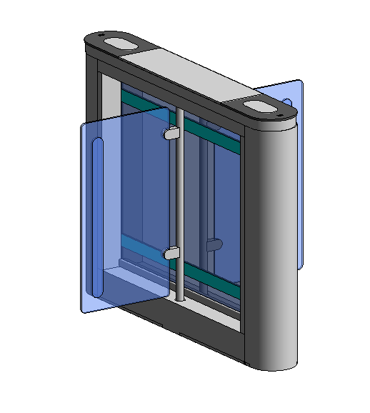 The swinging waist-high turnstile Sweeper-G , with one glass swing panel, can operate in two modes : normally closed and normally open. Both access directions are free when the turnstile is deenergized. The speed gates have an ultra-modern futuristic design;